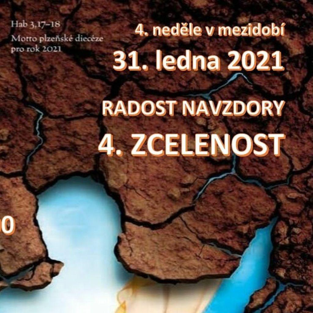 Uvedení do bohoslužby o 4. neděli v mezidobí ve farní kapli sv. Jana v Chebu a druhé čtení 1 Kor 7,20.32-35 (10,5 min.), kázání na téma "Radost navzdory: 4. Zcelenost" (21,5 min.) a závěrečná píseň (1 min.), celkem 33 min.