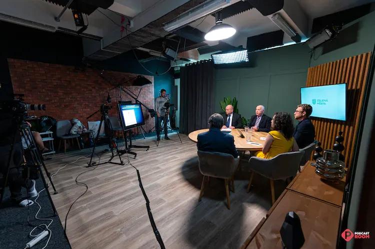 Podcastroom má dvě plně vybavená studia. Menší studio je zaměřené především na audio a probíhá zde natáčení podcastů, voice overů a dabing. Druhé studio je pro veškeré video projekty, od live streamu, přes reklamní spoty, video podcasty či produktové fotografie a videa. Natáčet a fotit můžete před cihlovou zdí, bílou a černou stěnou, barevným foto pozadím nebo postavíme kulisy podle vašich představ či LED stěnou. Světla jsou zabudována na stropních konstrukcích, aby se dal celý prostor co nejvíce využít pro danou scénu. Hercům a produkčním týmům je k dispozici vybavená maskérna a visage team s bohatými zkušenostmi.